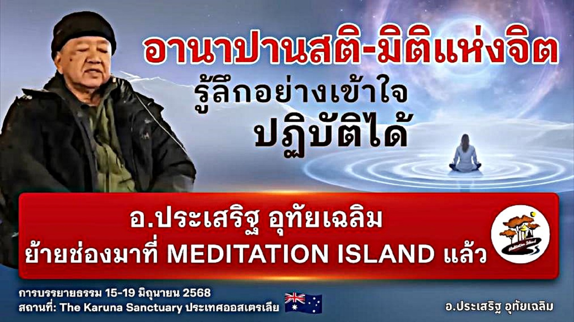 การบรรยายธรรม : วันที่ 15 – 19 มิถุนายน 2568 “อานาปานสติ มิติแห่งจิต” รู้ลึกอย่างเข้าใจ ปฏิบัติได้ โดย อ.ประเสริฐ อุทัยเฉลิม